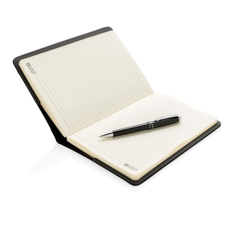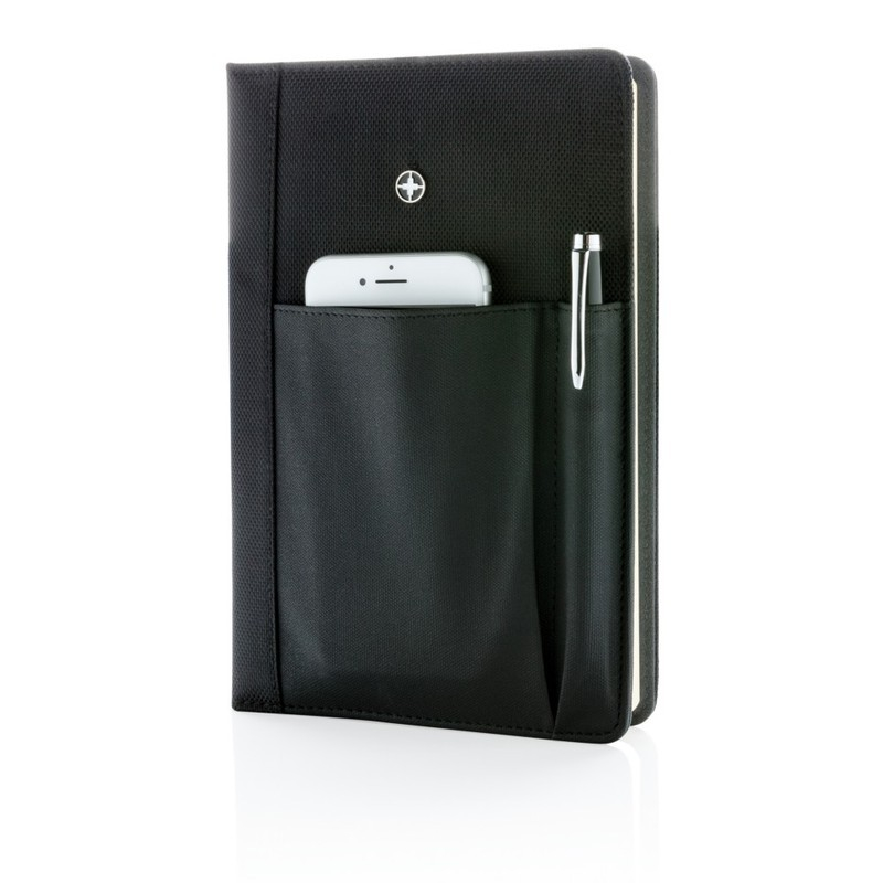 Notatnik Swiss Peak (ok. A5, 96 kartek 80 g/m2), długopis, okładka wielokrotnego użytku wykonana z poliestru 1680D i 600D, kieszonka na telefon lub inne drobne akcesoria, w pudełku podarunkowym Swiss Peak.