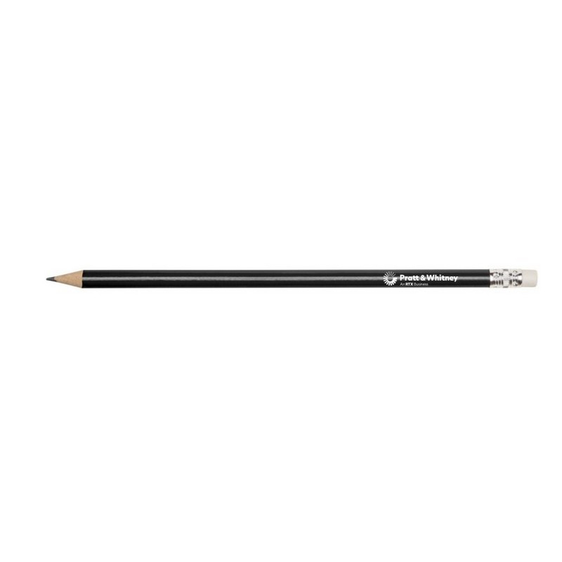 Ołówek z gumką i kolorowym trzonem, posiada naostrzoną końcówkę, produkt wykonany z drewna. Znakowanie: logo 1 kolor