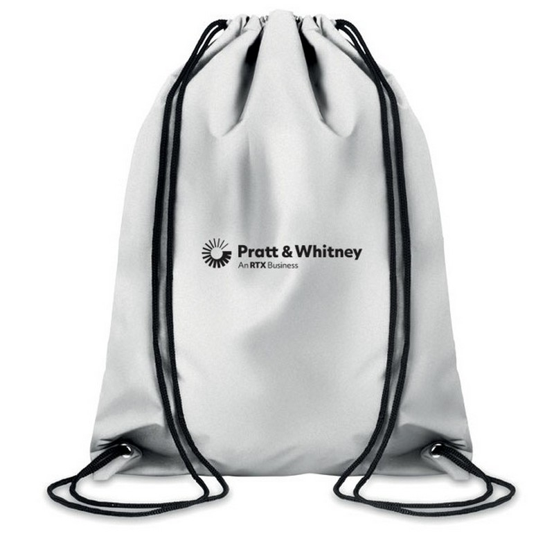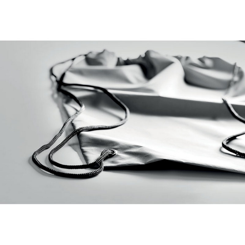 Odblaskowy plecak ze sznurkiem. Wymiar: 30 x 40 cm Znakowanie: logo 1 kolor / 1 strona